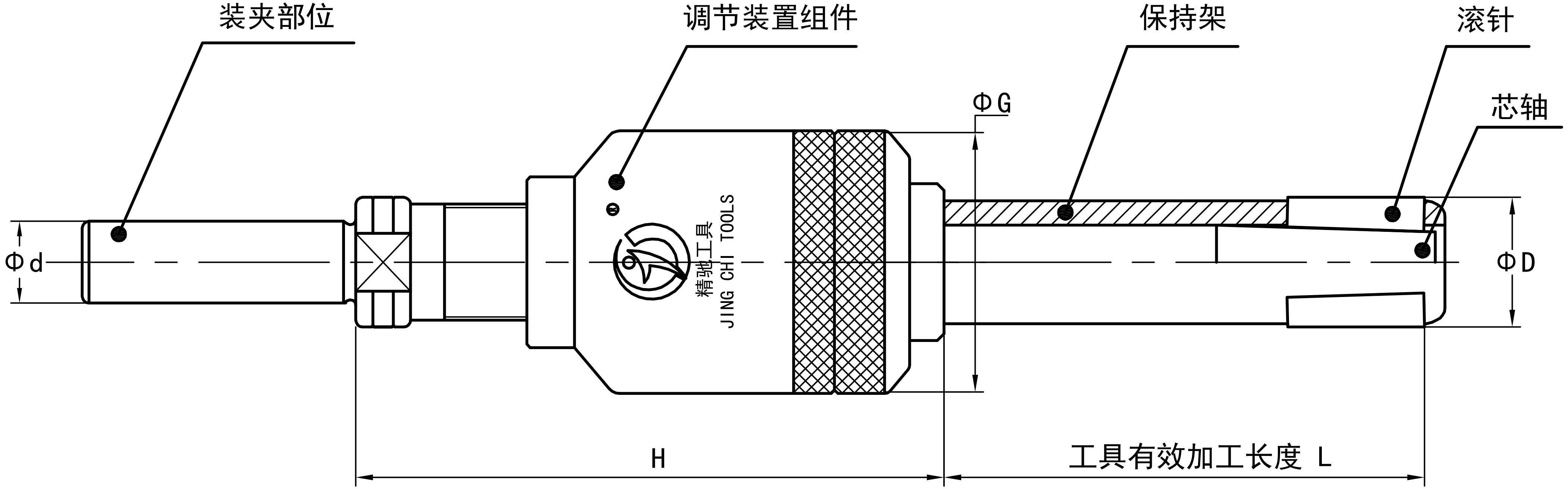 加工孔徑Φ40以上的滾壓刀,由于調節組件的外徑比加工孔徑小,可通過(guò)加長(cháng)柄部尺寸的方法增加加工長(cháng)度。